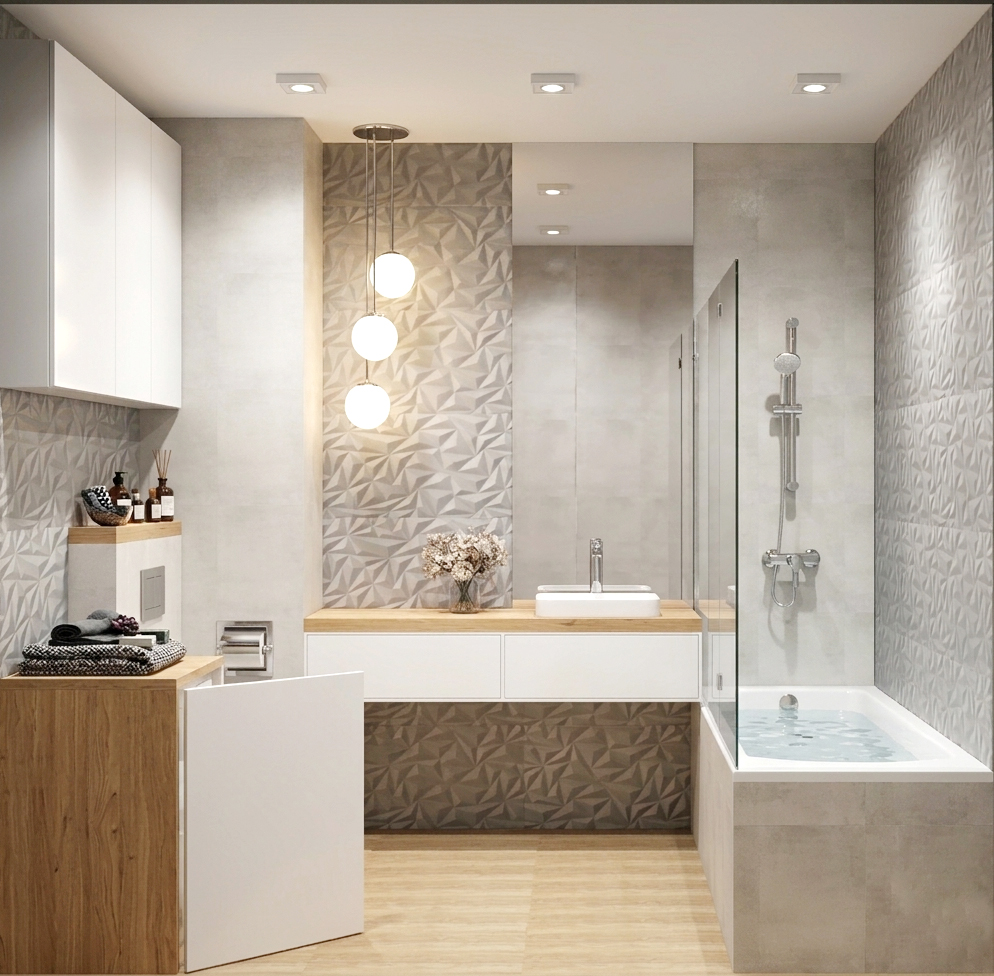 • Gra światła: Zastosowanie płytek 3D w połączeniu z odpowiednio dobranym oświetleniem punktowym sprawia, że ściana „żyje” i zmienia swój wygląd w zależności od pory dnia.